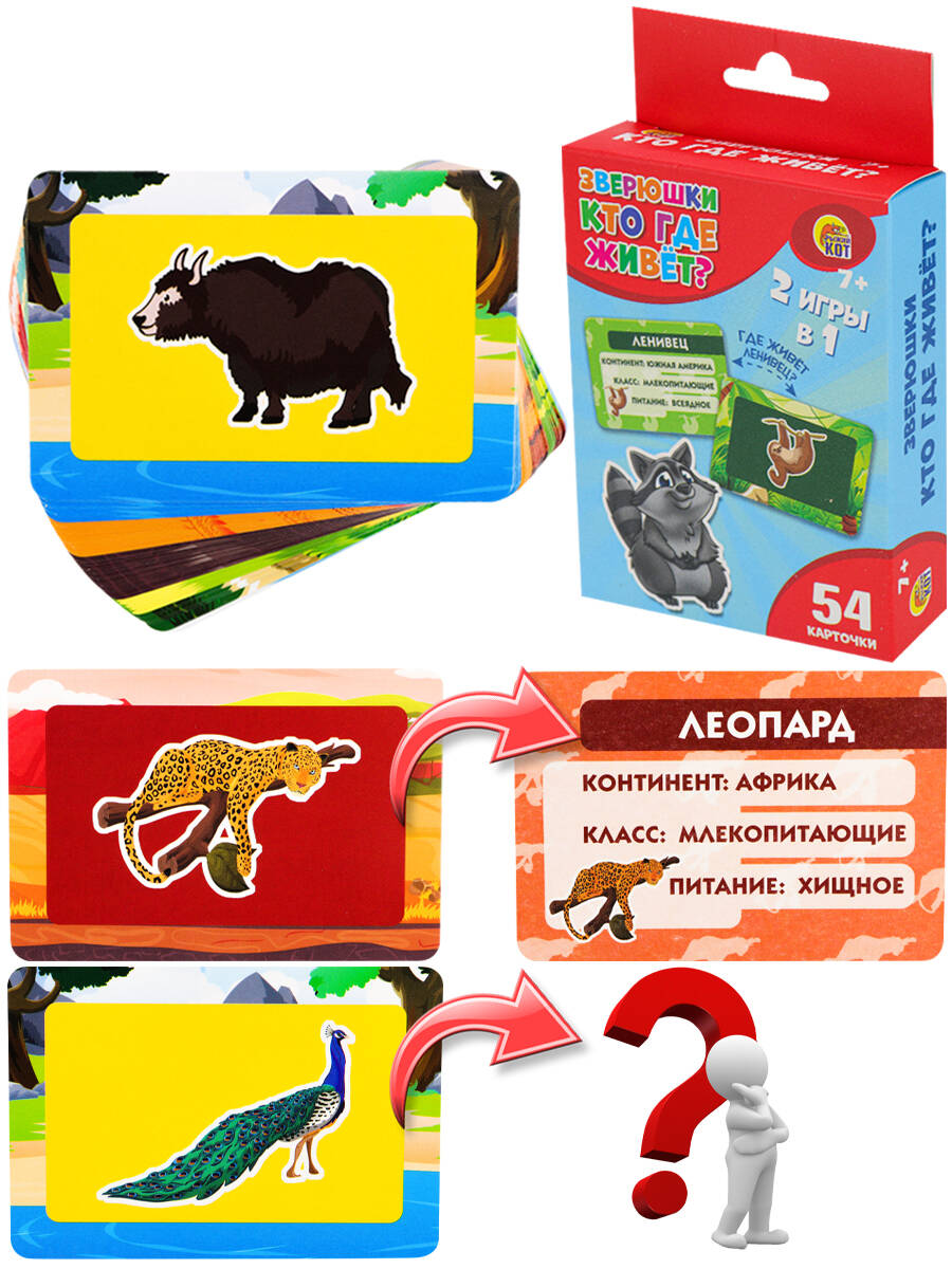 "Зверюшки. Кто где живёт?" - обучающая карточная игра, которая в увлекательной соревновательной форме поможет каждому быстро узнать и запомнить наиболее важные факты о разнообразных животных. Благодаря красочным иллюстрациям и доходчивой форме подачи игроки запомнят, на каком континенте звери обитают, хищные они, травоядные или всеядные, к какому классу они относятся. Состав игры: -54 карточки (109х74мм) - Правила игры Возраст: 7+ Количество игроков: 2-4 Время игры: 15+