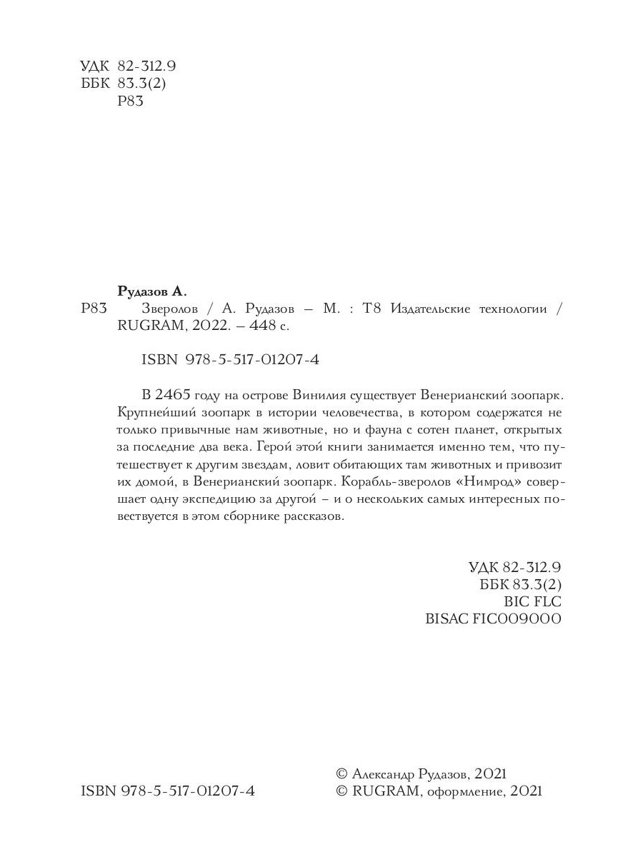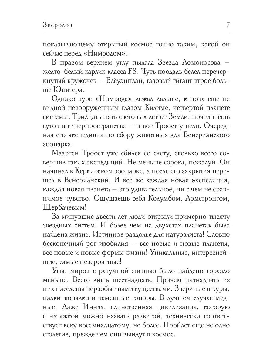 В 2465 году на острове Винилия существует Венерианский зоопарк. Крупнейший зоопарк в истории человечества, в котором содержатся не только привычные нам животные, но и фауна с сотен планет, открытых за последние два века. Герой этой книги занимается именно тем, что путешествует к другим звездам, ловит обитающих там животных и привозит их домой, в Венерианский зоопарк. Корабль-зверолов «Нимрод» совершает одну экспедицию за другой - и о нескольких самых интересных повествуется в этом сборнике рассказов.