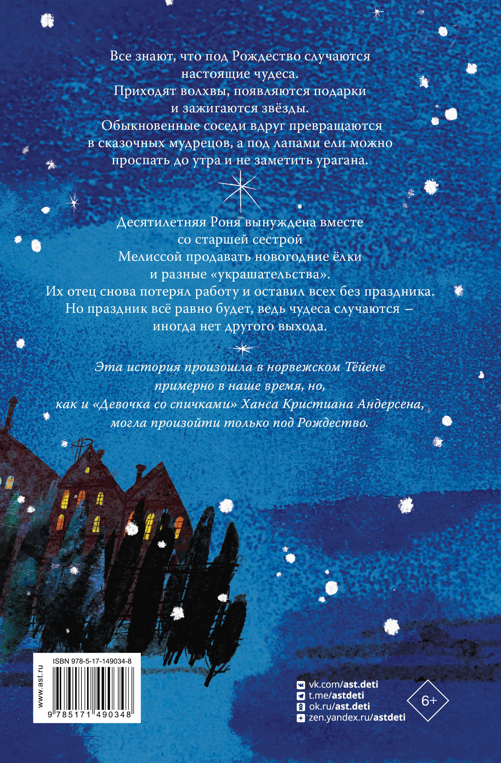 Пять причин купить книгу: 1. Настоящая волшебная история про Рождество; 2. Вошла в лист современной классики в Норвегии, Дании и Швеции; 3. Социальная драма; 4. Магический реализм тесно переплетается с современной реальностью; 5. Современная "Девочка со спичками" Х.- К. Андерсена.| Издательство | ИЗДАТЕЛЬСТВО "АСТ" |