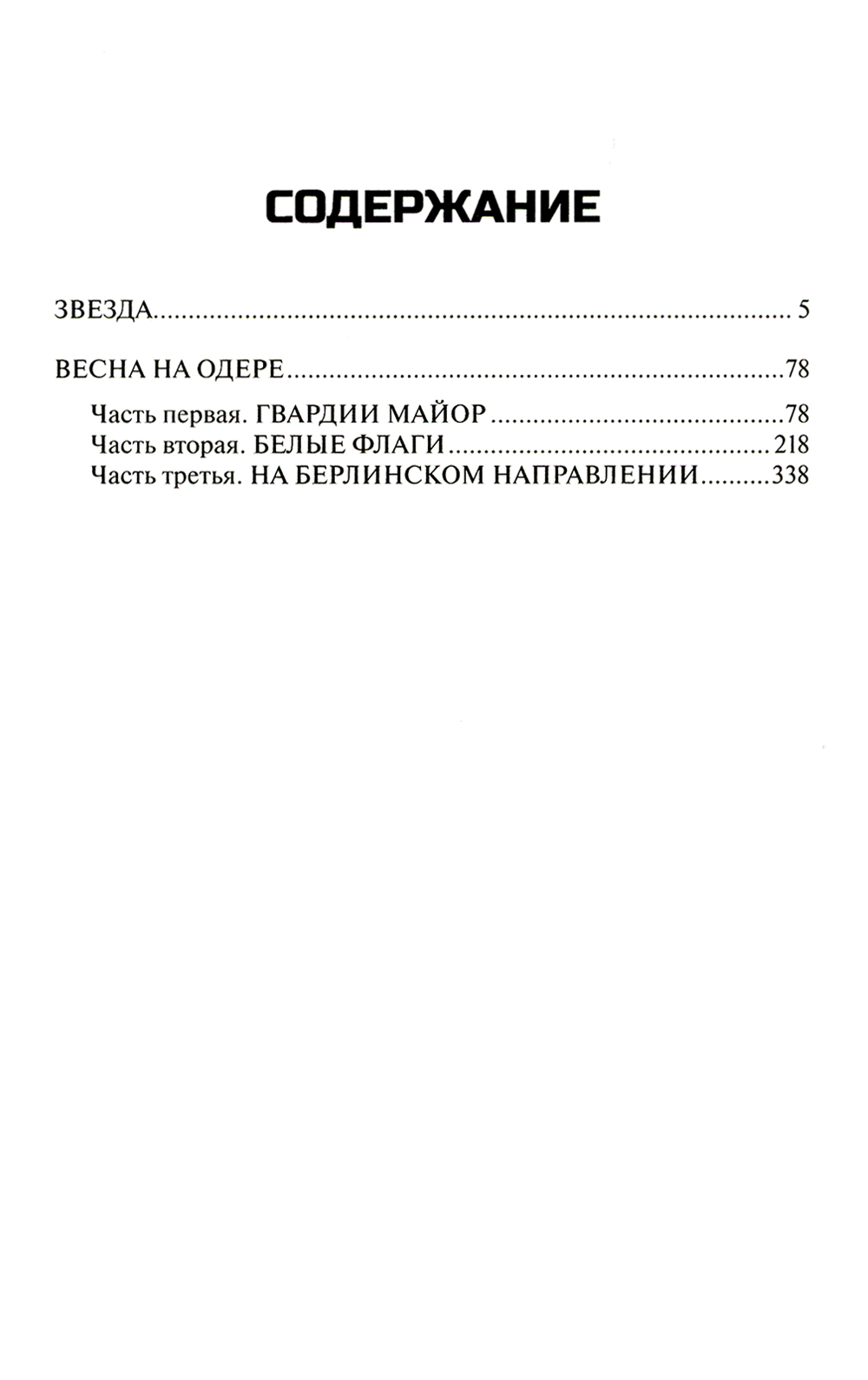 В книгу известного писателя Эммануила Казакевича включены наиболее значимые для его творчества произведения. Военная повесть «Звезда», принесшая автору славу и признание, удостоенная Сталинской премии и выдержавшая более 50 (!) переизданий и несколько экранизаций. Это история группы разведчиков, добывших важные сведения о противнике и погибших как герои. Роман «Весна на Одере» - лирический и одновременно драматический рассказ о последних боях в Германии, о нескольких днях из жизни военной комендатуры в небольшом немецком городке.