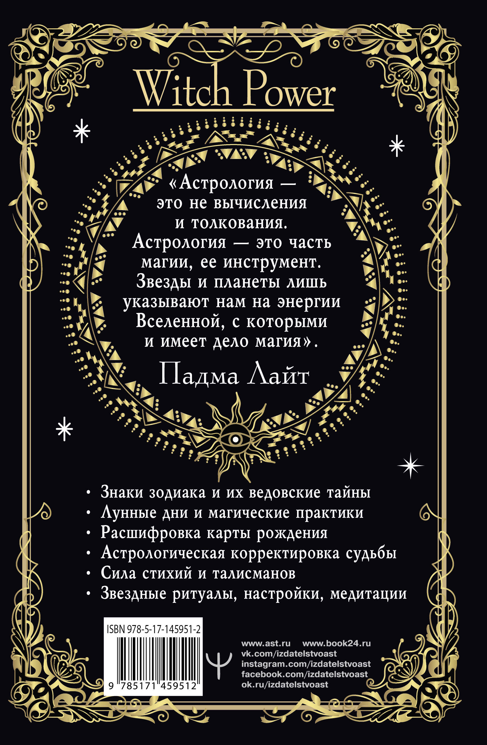 Говорят, что магия и расчеты - вещи несовместимые. Но книга Падмы Лайт «Звездная магия. Путеводитель для современной ведьмы» серии «Witch Power» показывает обратное. Астрологические расчеты обращают читателя к энергиям Вселенной и могут магическим образом изменить всю жизнь, если знать, как ими воспользоваться. Вы научитесь читать натальные карты, гороскопы, узнаете о явных и скрытых свойствах знаков зодиака, лунных дней, домов и даже стихий. Такая астрология несет в себе волшебство магических практик, ритуалов и настроек - все, чтобы стать сильной астроведьмой.| Издательство | ИЗДАТЕЛЬСТВО "АСТ" |