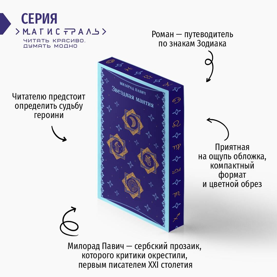 Милорад Павич - знаковый сербский писатель, в произведениях которого магический реализм переплетается с гипертекстуальностью, позволяющей читателю влиять на сюжет. Роман «Звездная мантия» - это путеводитель по знакам Зодиака и путешествие сквозь время и пространство. Главная героиня однажды обнаруживает, что стоит ей заснуть, как она перерождается в новом воплощении под знаком другого созвездия. Она становилась девушкой из Средневековья, влюбленной по уши в парня-Водолея и собирающейся кого-то убить. Была женщиной из XX века, у которой имелся враг в XVIII веке, родившийся под знаком Стрельца и крадущий ее время и молодость. Оказывалась под бомбардировкой Югославии, страдая от любви к Тельцу, забывшего, как ее зовут… Переносясь по страницам справочника зодиакальных созвездий, вам предстоит определить судьбу героини: вернуть ей имя и воссоединить влюбленных или, ничего не предприняв, оставить их разбитыми посреди войны.| Издательство | ООО "Издательство "Эксмо" |
