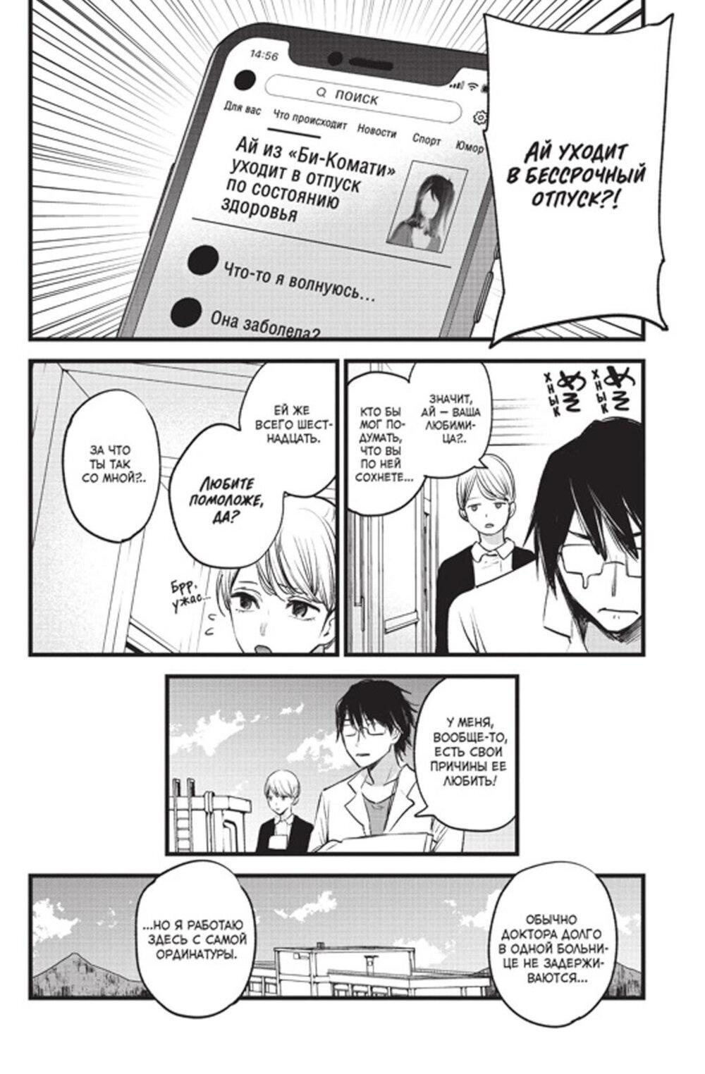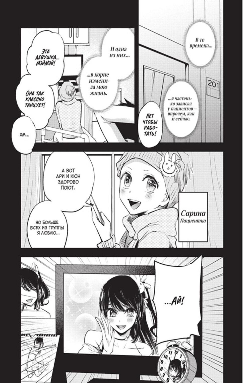 Горо - акушер-гинеколог в захолустной больнице, чья жизнь далека от мира шоу-бизнеса. Все меняется, когда к нему на прием приходит Ай Хосино - восходящая звезда, от которой он фанатеет уже долгое время. И вот так новость - она беременна! Девушка не намерена отказываться от карьеры айдола и решает рожать в тайне от поклонников, а Горо готов на все, чтобы роды прошли безопасно. Но, к сожалению, он сталкивается со сталкером Ай и погибает от его рук. И тут судьба дарует доктору второй шанс - вновь открыв глаза, он понимает, что переродился ребенком своего кумира!| Издательство | Азбука |