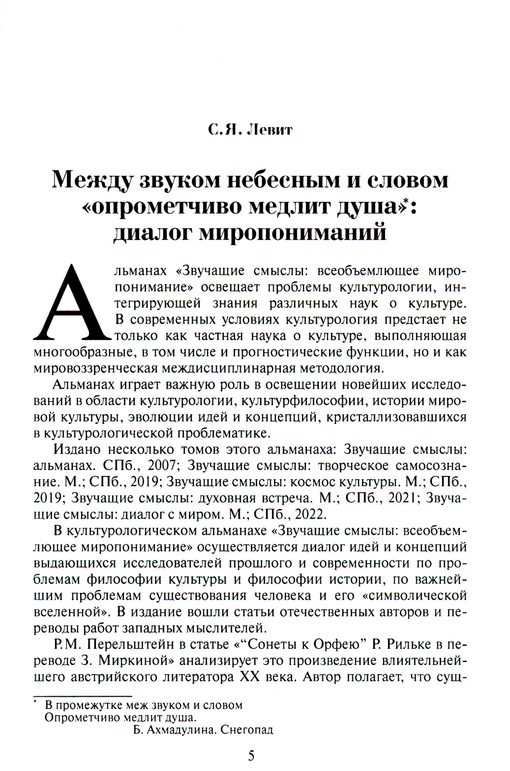 Аннотация: Звучащие смыслы: Всеобъемлющее миропонимание. Культурологический альманах