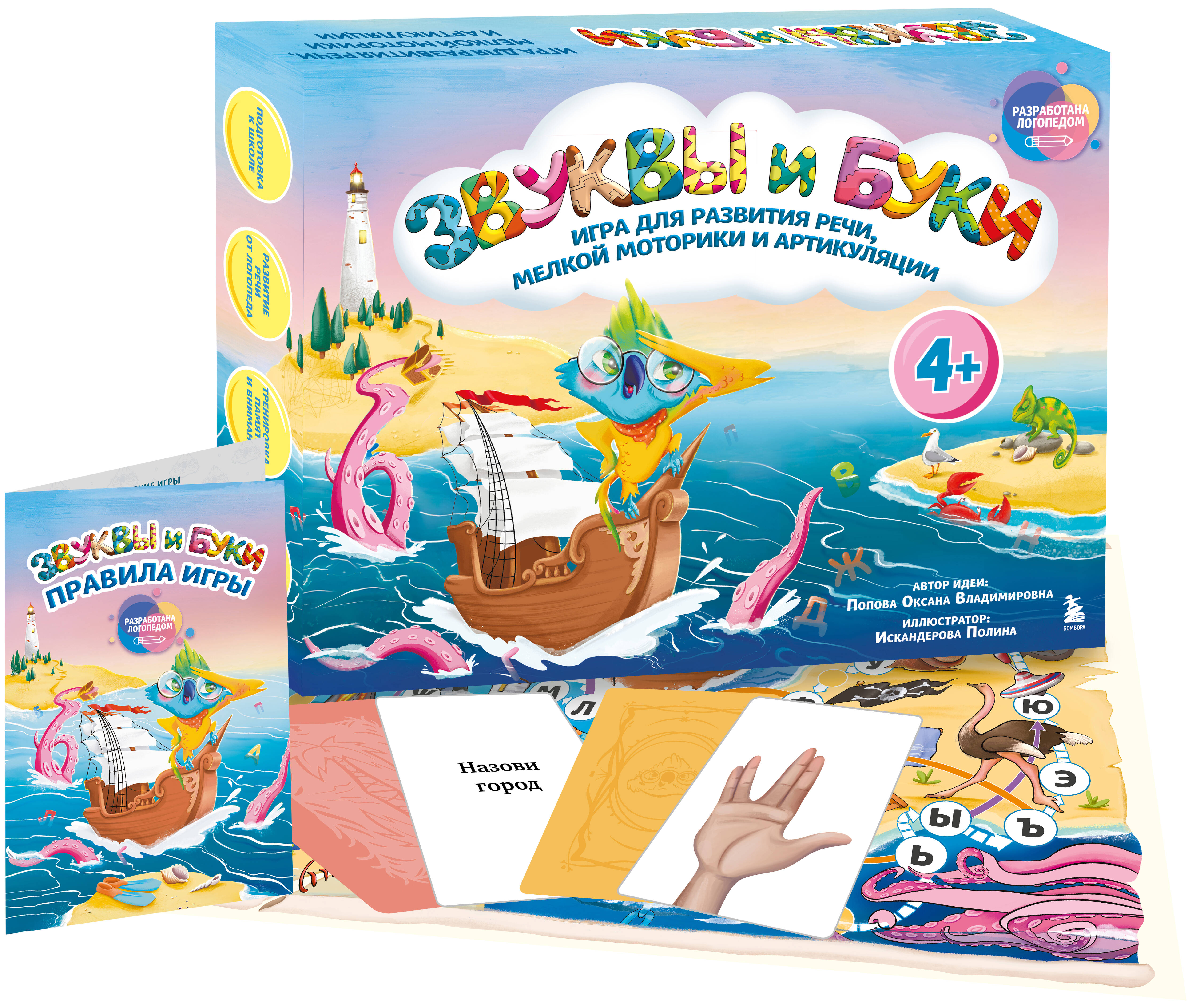 Уникальная развивающая логопедичекая настольная игра для детей от 4 лет и всей семьи. Автор - практикующий логопед-дефектолог. Более 30 лет помогает дошкольникам развивать речь через игру. Хотите, чтобы первый опыт знакомства с буквами стал для вашего ребенка радостным и увлекательным? "Звуквы и буки" - это не скучный урок, а настоящее морское путешествие! Ваш малыш станет капитаном и отправиться на поиски знаний вместе с попугаем Всечитайкой, который очень научиться читать. Вместе им предстоит: узнать буквы и звуки русского алфавита научиться их писать и узнавать в словах составлять первые слова и предложения В игровой набор входят: яркое, цветное игровое поле большого формата набор карточек для развития мелкой моторики набор карточек для изучения новых слов пластиковые кубик и четыре фишки 2 перышка к игре для развития артикуляции Яркая и иллюстрированная брошюра внутри расскажет о правилах игры и о том, как ее можно адаптировать под возраст и возможности ребенка.| Издательство | ООО "Издательство "Эксмо" |