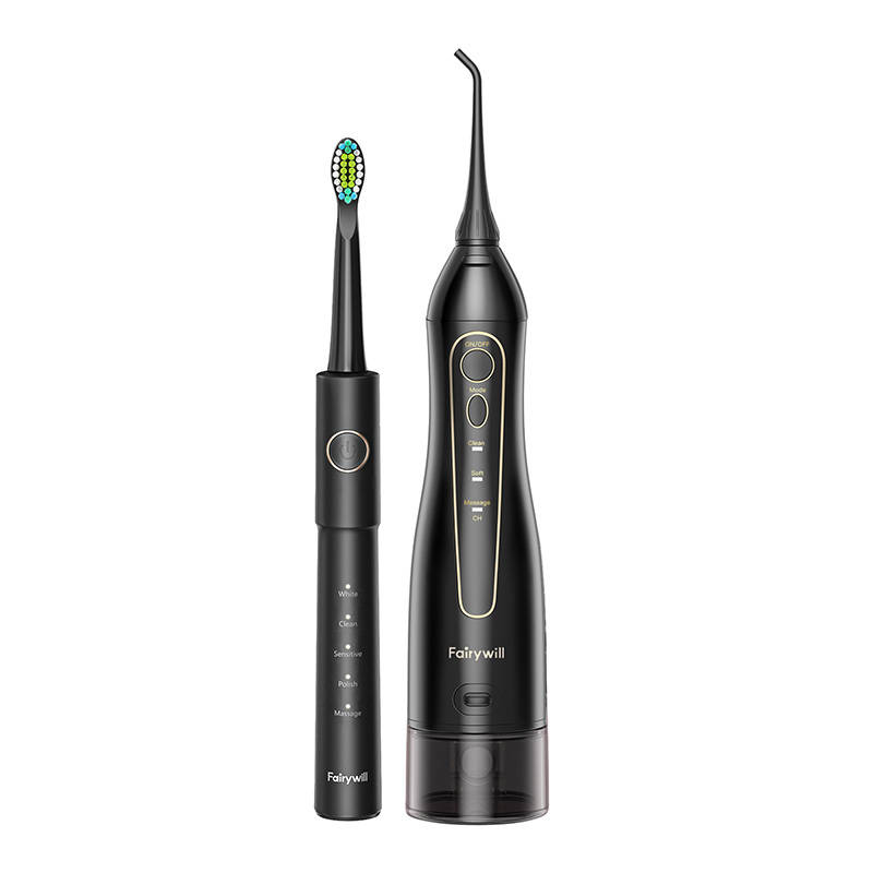 FairyWill FW-E11 sonic toothbrush with tip set and FairyWill FW-5020E irrigator