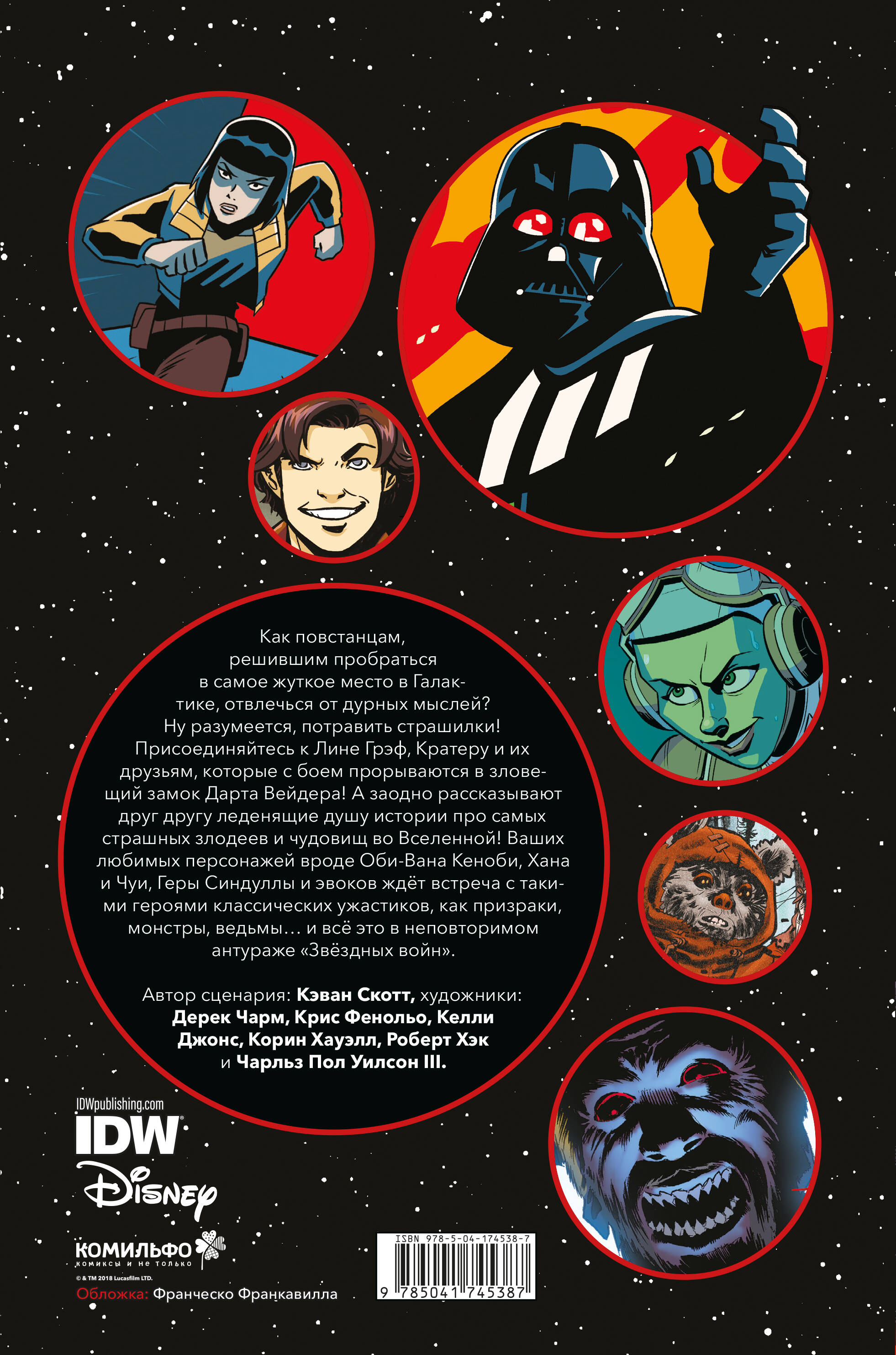 Как повстанцам, решившим пробраться в самое жуткое место в Галактике, отвлечься от дурных мыслей? Ну разумеется, потравить страшилки! Присоединяйтесь к Лине Грэф, Кратеру и их друзьям, которые с боем прорываются в зловещий замок Дарта Вейдера! А заодно рассказывают друг другу леденящие душу истории про самых страшных злодеев и чудовищ во Вселенной! Ваших любимых персонажей вроде Оби-Вана Кеноби, Хана и Чуи, Геры Синдуллы и эвоков ждёт встреча с такими героями классических ужастиков, как призраки, монстры, ведьмы… и всё это в неповторимом антураже «Звёздных войн». Автор сценария: Кэван Скотт, художники: Дерек Чарм, Крис Фенольо, Келли Джонс, Корин Хауэлл, Роберт Хэк и Чарльз Пол Уилсон III.| Издательство | ООО "Издательство "Эксмо" |