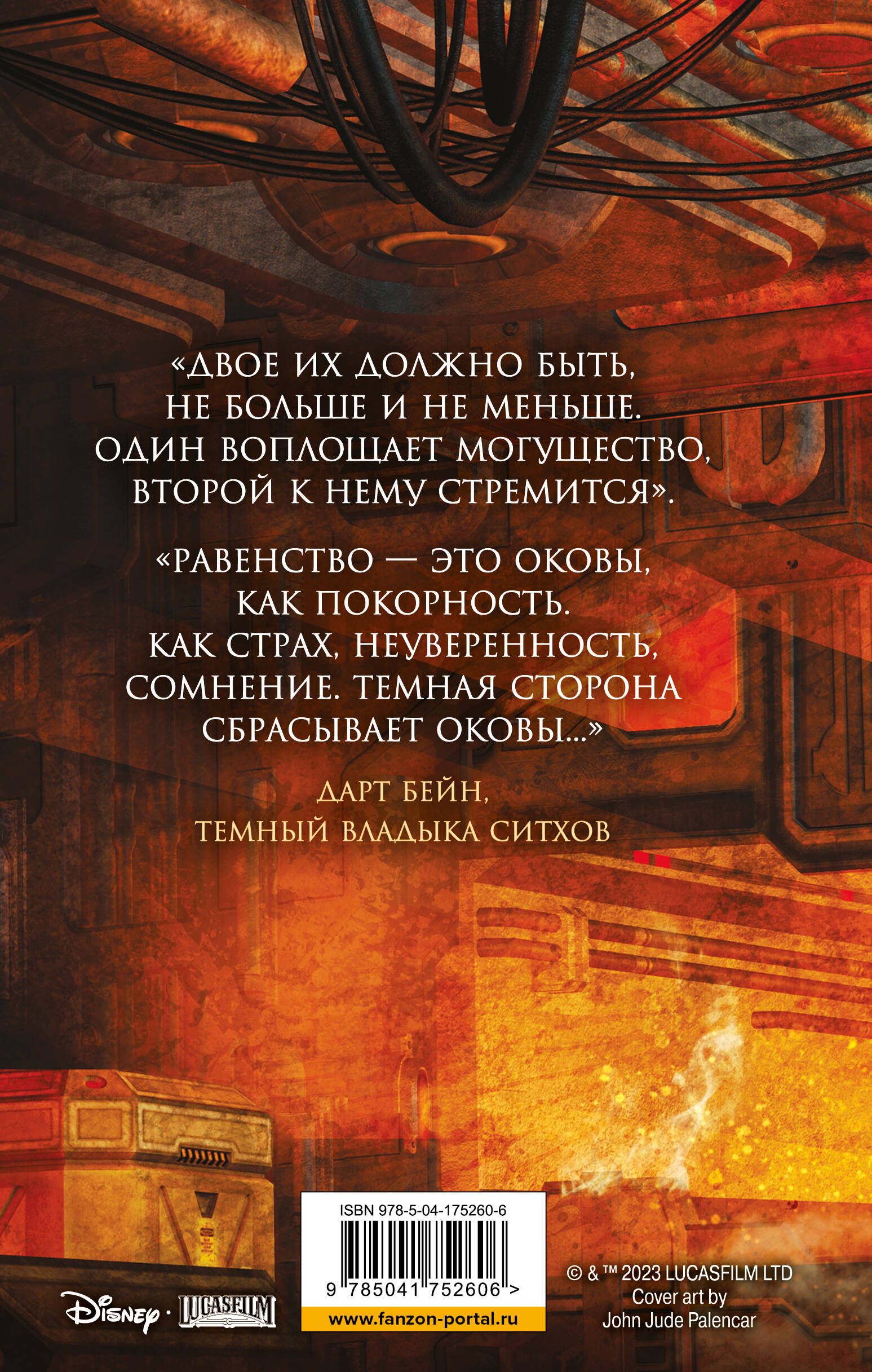 «ДВОЕ ИХ ДОЛЖНО БЫТЬ, НЕ БОЛЬШЕ И НЕ МЕНЬШЕ. ОДИН - ВОПЛОЩАЕТ МОГУЩЕСТВО, ВТОРОЙ - К НЕМУ СТРЕМИТСЯ. РАВЕНСТВО - ЭТО ОКОВЫ, КАК ПОКОРНОСТЬ. КАК СТРАХ, НЕУВЕРЕННОСТЬ, СОМНЕНИЕ. ТЕМНАЯ СТОРОНА СБРАСЫВАЕТ ОКОВЫ». - Дарт Бейн, темный владыка ситхов Оставшись последним выжившим ситхом, Дарт Бейн провозгласил жестокую новую доктрину: Правило двух. Следуя этой политике, Дарт Бейн находит идеального ученика. Занна, несмотря на свой юный возраст, одержима местью и обладает инстинктивной крепчайшей связью с темной стороной Силы. Под наставничеством ситха Занна станет неотъемлемой частью его плана по уничтожению джедаев и захвату абсолютной власти в Галактике. Джедаи уверены, что Галактика полностью очищена от их древнего врага. И потому на пути Дарта Бейна способен встать лишь Джохан Отон, падаван мастера-джедая лорда Хота. Не обращая внимания на сомнения других джедаев, Джохан намерен отыскать последнего ситха, от рук которого пал его наставник. Но он не в силах предвидеть, сколь невероятное новое знание и могущество открыл Бейн, заглянув в потоки Силы. Могущество, которое изменит его таким образом, о каком он сам не мог и помыслить. «Что есть: экзотические планеты, яркий бестиарий, обучение Тёмной стороне, бои на световых мечах, интриги ситхов, сепаратистов и политика республиканцев». - Fantlab «Блестяще!» - SFX Magazine