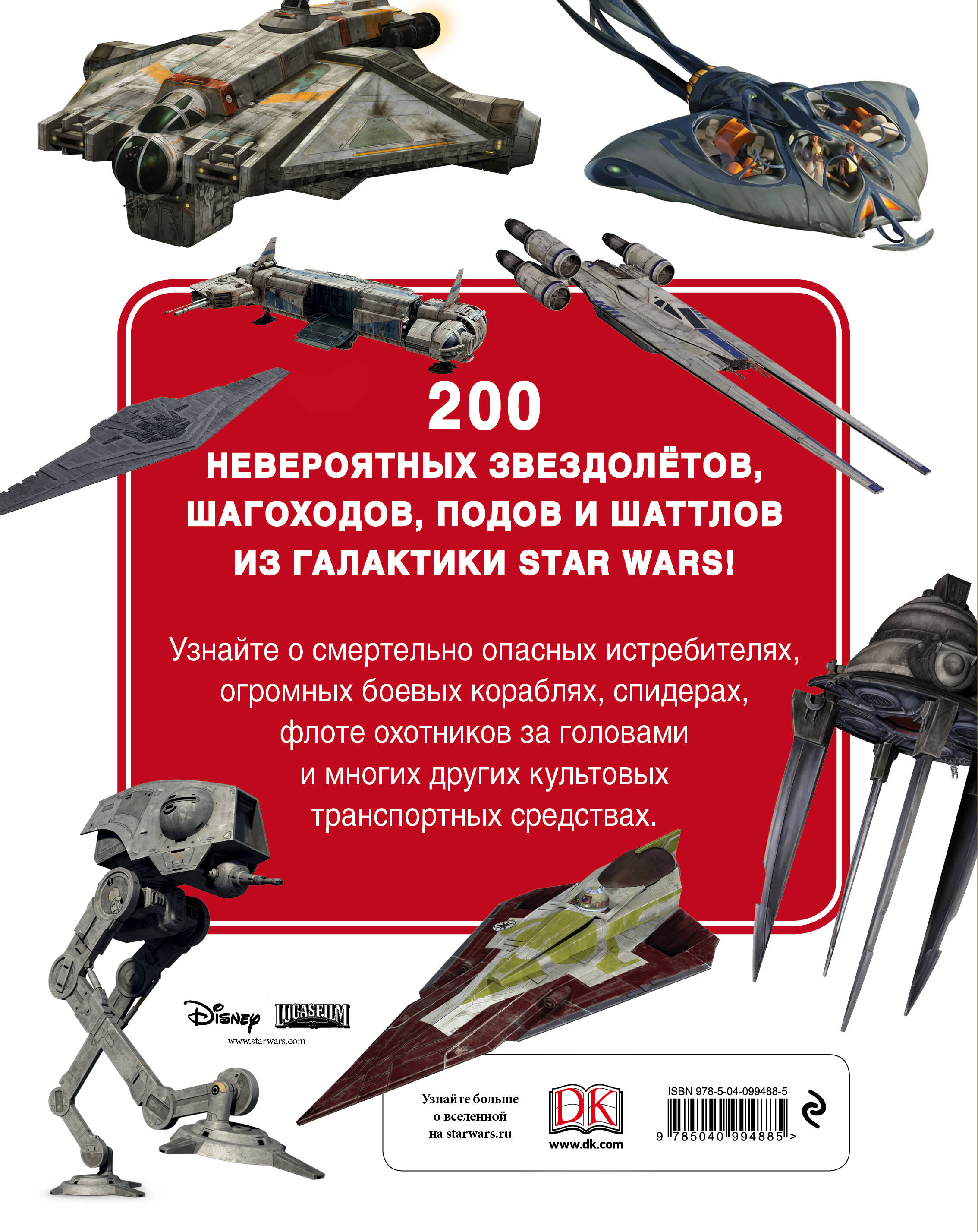 200 невероятных звездолётов, шагоходов, подов и шаттлов из галактики STAR WARS! Узнайте о смертельно опасных истребителях, огромных боевых кораблях, спидерах, флоте охотников за головами и многих других культовых транспортных средствах.